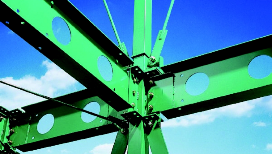鉄骨プレハブシステム。鉄は圧縮・引張・曲げに関しても木やコンクリートより高い強度を誇っています。
