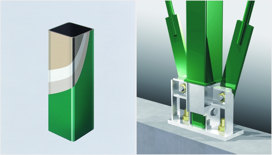 1階の柱は3層塗装で防錆性を向上。基礎と柱を分離させて柱の錆を防ぐとともに、基礎ピースには錆に強い「溶融亜鉛メッキ」を採用しています。